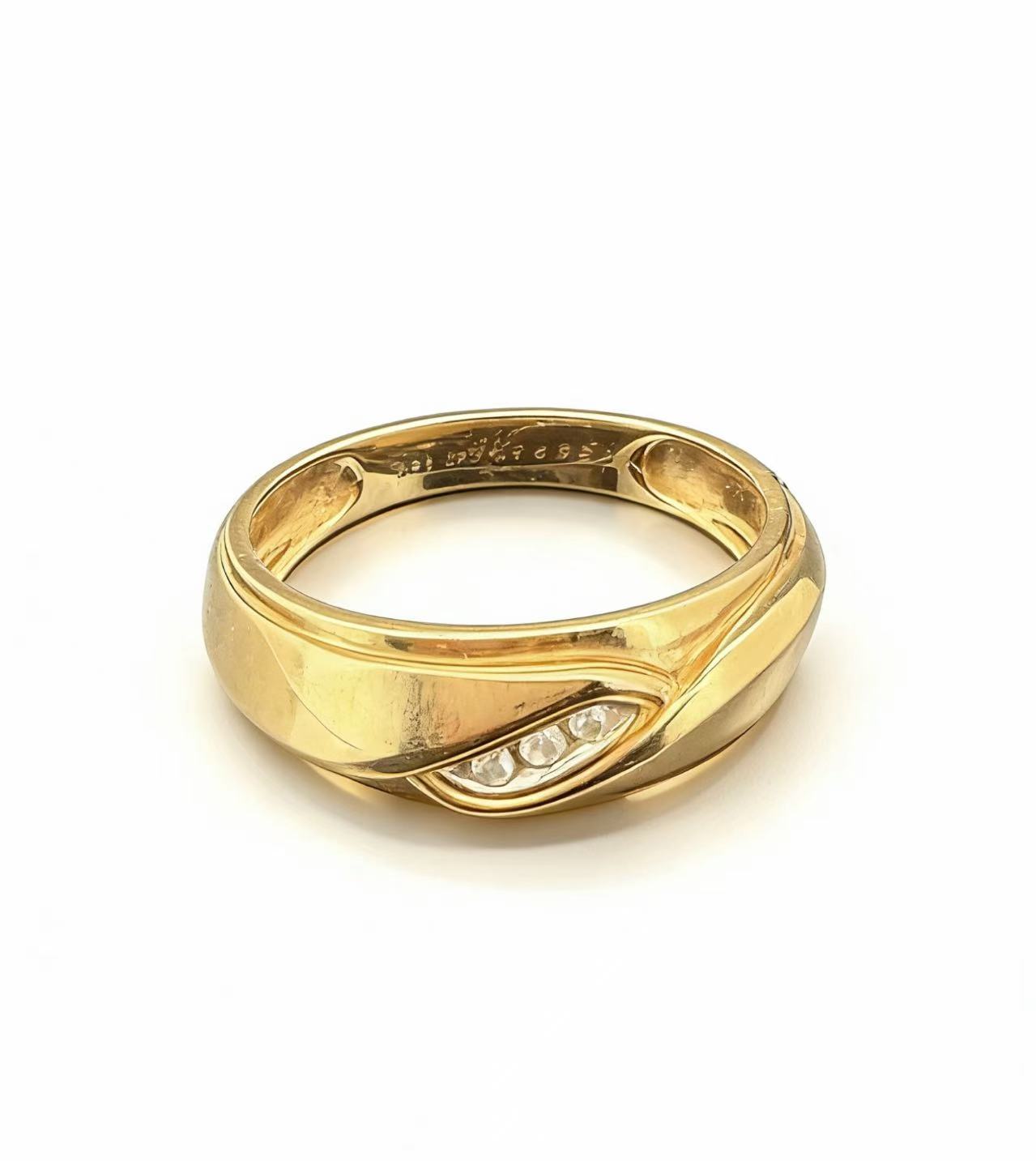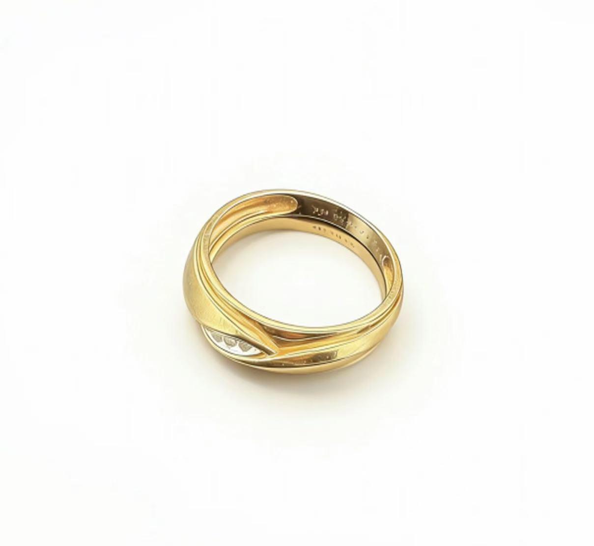 This 10K gold diamond ring features a fluid, interwoven band design that blends modern minimalism with subtle romantic detailing. The ring’s shank is crafted with a sleek, twisted silhouette in polished 10K gold, creating a sense of movement and dimension that sets it apart from classic band styles. A small cluster of round brilliant-cut diamonds is pavé-set within a recessed, curved notch of the twisted band, serving as a delicate focal point that catches light without overpowering the ring’s streamlined aesthetic.