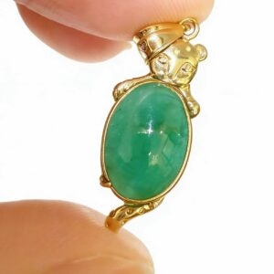 This exquisite 14K gold emerald pendant is a stunning fusion of artisanal craftsmanship and timeless elegance. Featuring a vibrant oval cabochon emerald with rich, velvety green hues and natural internal veining, the gemstone takes center stage, held securely in a polished 14K gold bezel setting that accentuates its lush color and smooth surface.