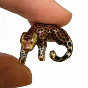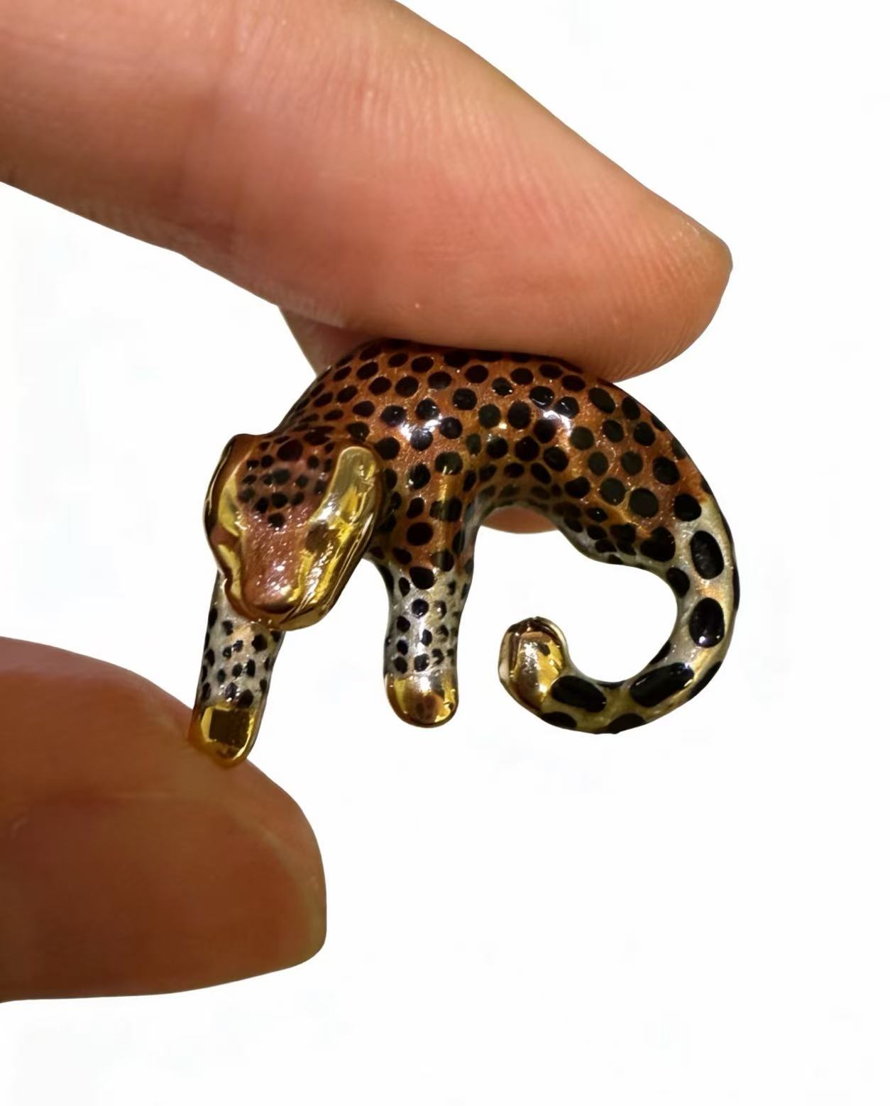 14K gold enamel cheetah pendant, sculpted in 3D to capture the cheetah’s dynamic posture. Enamel cloisonné precisely restores the iconic leopard print, with 14K gold boasting a rich, mellow texture. The pendant features a complete, flawlessly shaped design with smooth lines, where wild aesthetics collide with the nobility of gold. It’s a standout piece for daily wear and ideal for gifting or personal use.