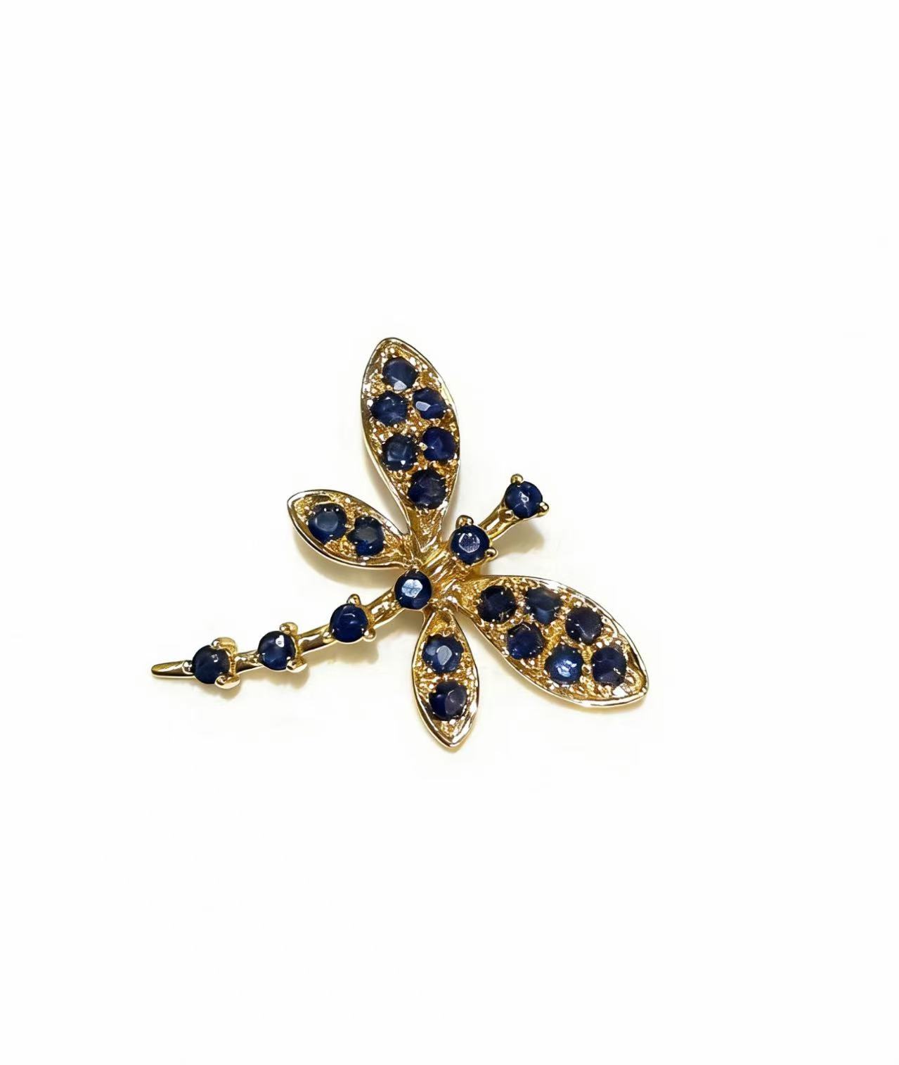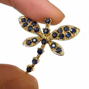 This enchanting 14K gold pendant captures the delicate beauty of a dragonfly with vibrant sapphire accents and intricate metalwork, blending nature-inspired design with fine jewelry craftsmanship.