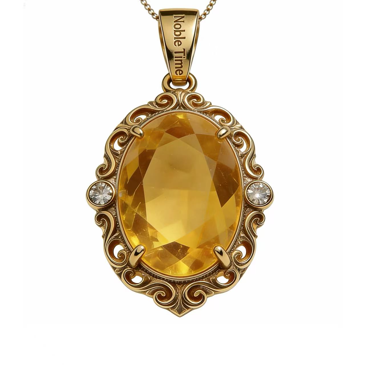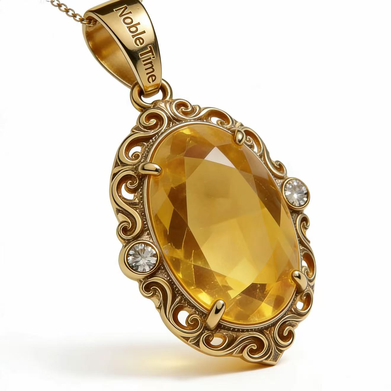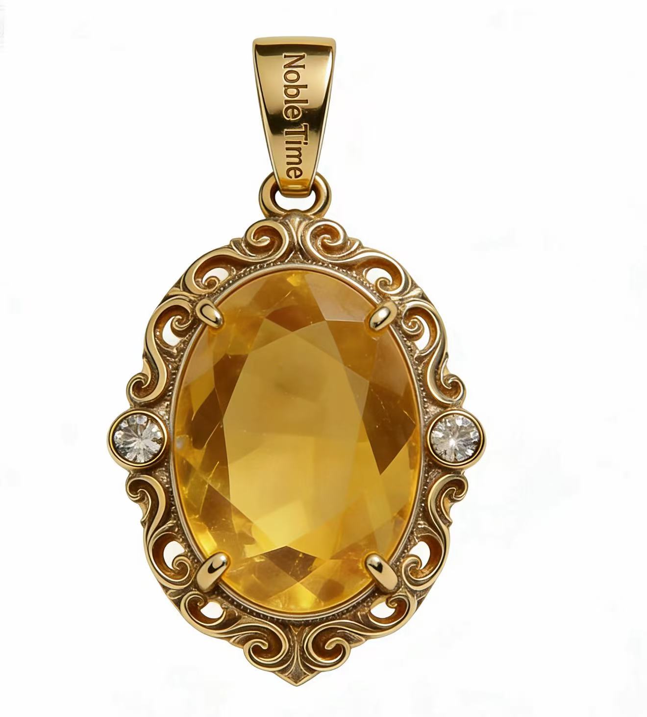 This 18K gold pendant is a harmonious blend of vintage elegance and modern craftsmanship, centered on a vivid, oval-cut citrine that captures the warmth of golden sunlight. The gemstone’s rich honey-yellow hue is beautifully framed by an ornate 18K gold border, featuring hand-carved scrollwork that adds intricate texture and a touch of old-world charm.